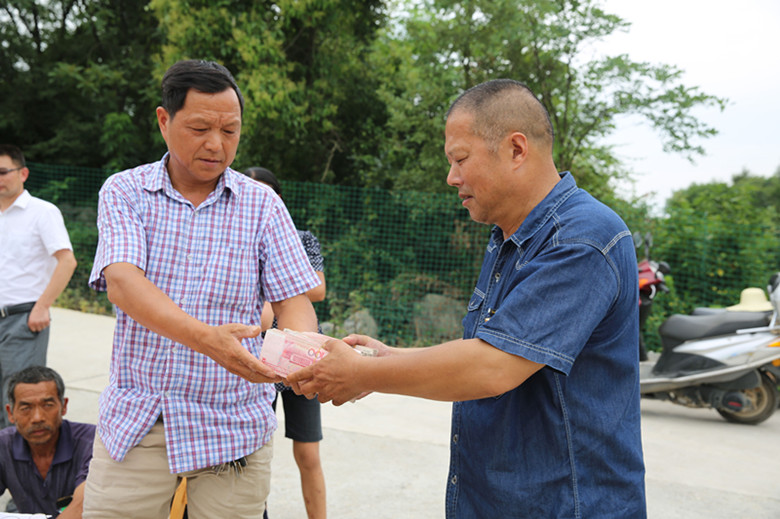 8月10日,筆者來到石門縣磨市鎮(zhèn)鮑家渡村,踏訪這家全省規(guī)模最大的現(xiàn)代化家禽扶貧養(yǎng)殖基地,恰巧碰上首批飼養(yǎng)的石門土雞正在出欄。10多輛運(yùn)雞車在云繚霧繞的山間公路上穿梭,20多位貧困戶組成的抓雞裝雞隊(duì)伍忙個(gè)不停。詢問他們一天的收入情況,一位60多歲的老農(nóng)笑著說:“雞場是按抓雞的總重量算的,一公斤9分錢,我昨天拿到110元,今天應(yīng)該還多些?!?/span>