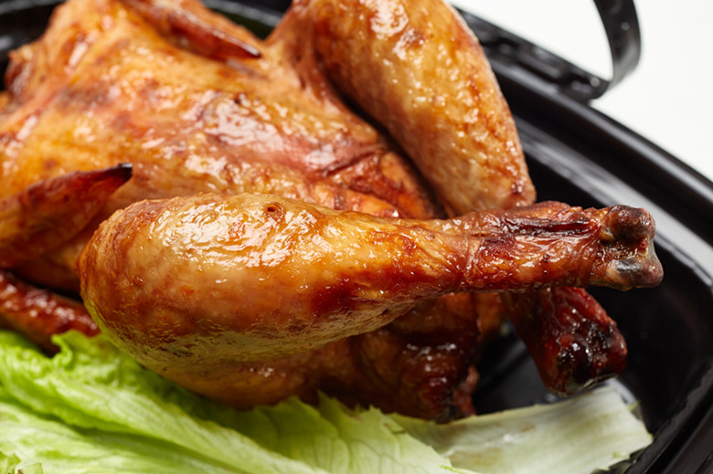 一大早,到菜市場(chǎng)趕早市的人們聞著烤雞香味,紛紛來(lái)到店內(nèi),得知烤雞未烤制好,立馬預(yù)定。