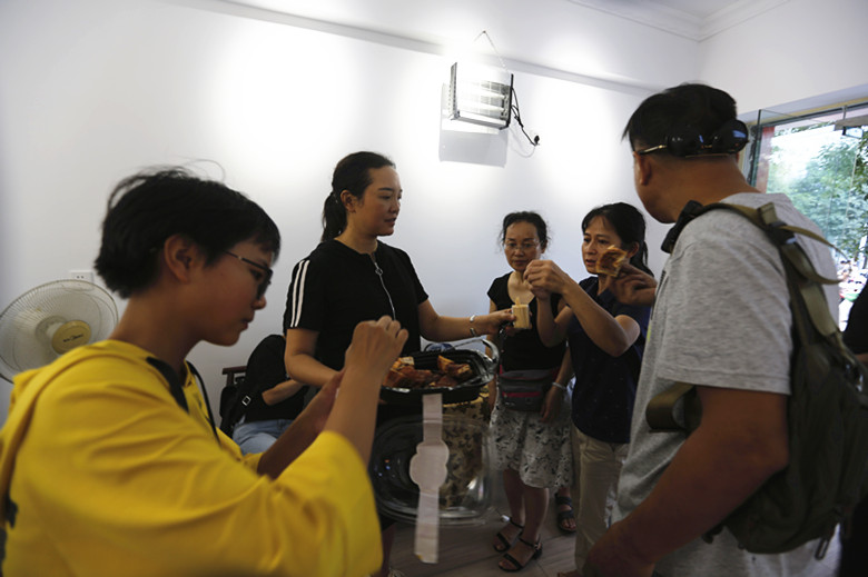 烤雞層層入味、大家大快朵頤。這位大姐來(lái)的一只石門土雞烤雞,立馬和身邊朋友們分享。大家給出了一致的評(píng)價(jià),。
