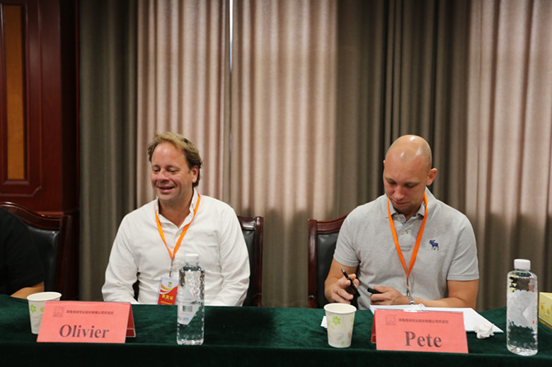 9月20日上午,荷蘭梅恩公司亞太區(qū)總監(jiān)Olivier、產(chǎn)品經(jīng)理Pete、業(yè)務經(jīng)理潘偉奇一行專程前來湘佳牧業(yè)參觀訪問。