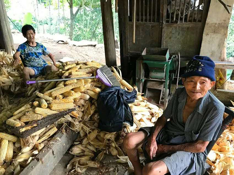 兩人的父母都是80多歲的老人了。見到兩位老人時,兩人正在一間破敗的房子里用手剝著玉米。