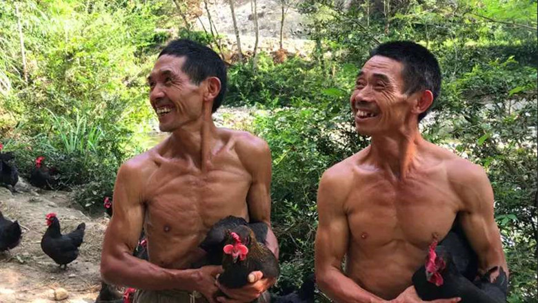 每到夏天,這對兄弟總是喜歡打著赤膊勞作,上身都曬成了古銅色,看上去身體還不錯。