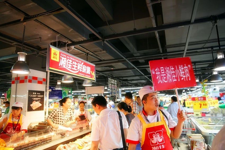 截至目前,已在北京、上海、廣州、深圳、重慶等100多座城市的近2000家中外超市開設(shè)了“湘佳生鮮家禽自營專柜”。