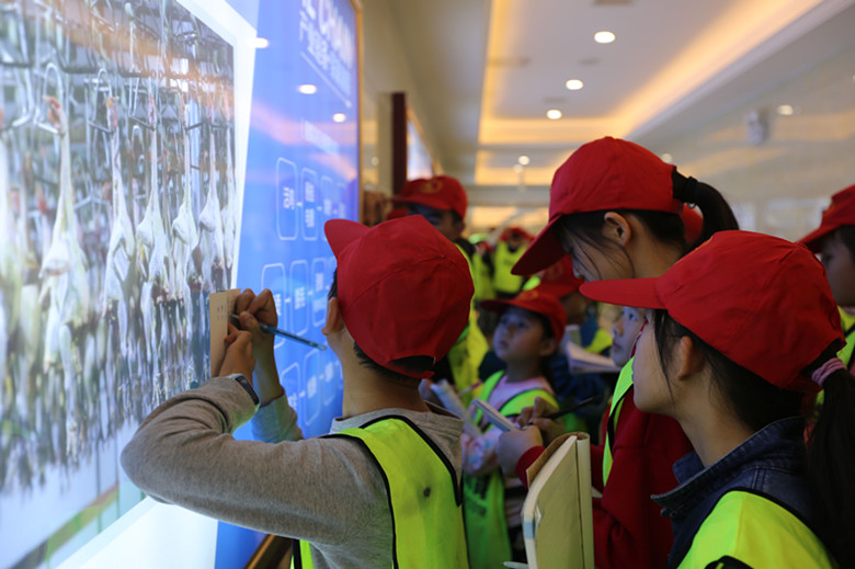看著湘佳文化長廊櫥窗里的屠宰流程和兩位創(chuàng)始人喻自文、邢衛(wèi)民的創(chuàng)業(yè)事跡,學(xué)生們不約而同地拿出紙和筆記下,說這是最好的寫作素材和知識要點。