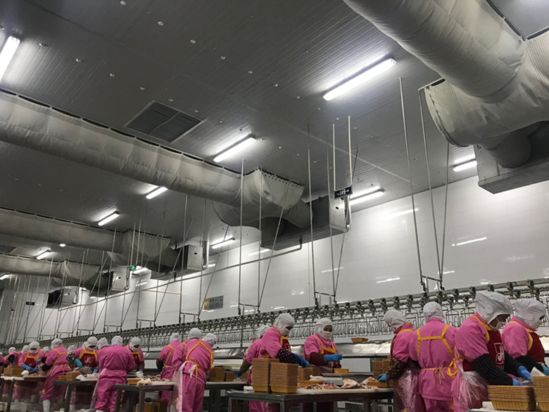掛雞平臺、水冷車間、風冷車間、裝雞平臺、分割車間、質控中心,他們邊看,邊聽,邊咨詢,邊拍照……
