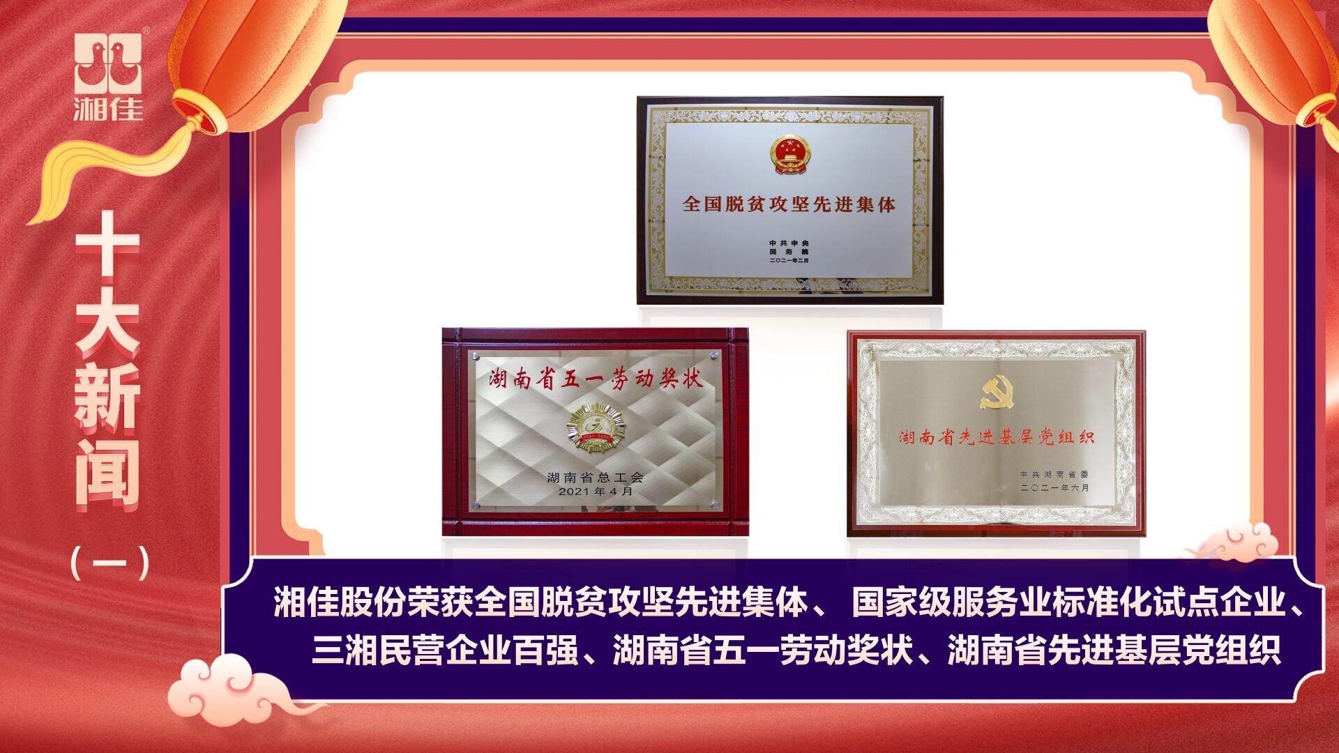 這一年,湘佳股份不斷“從內(nèi)打破”,開拓創(chuàng)新,榮獲全國脫貧攻堅先進集體、三湘民營企業(yè)百強等多項國家級、省級榮譽。